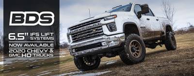 Take your 2020-2025 Chevy Silverado and GMC Sierra 2500 HD 4WD to the next level by installing this 6.5-inch lift kit by BDS Suspension. For maximum ground clearance, BDS designed a No Torsion Bar Drop System where the torsion bars are mounted directly to the top of the lower a-arm eliminating the need to drop the torsion bar cross-member. Designed to improve the stance, performance, and capability this kit includes everything necessary to set your truck up right with clearance for up to 38" tires.