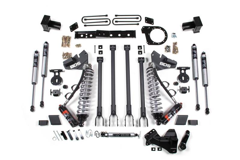 Raise the bar on your 2017-2019 Ford F250 and F350 Ford Super Duty diesel truck with this 6-inch 4-Link lift kit and FOX Performance Elite coil-over conversion from BDS. Designed to improve stance, performance, and capability, this kit includes everything necessary to set your truck up right with clearance for up to 38" tires.