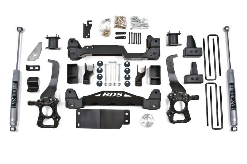 BDS steps up the performance and capability of the 2015-2020 Ford F150 4WD trucks with 4-inch suspension lift kits. Designed to improve stance, performance, and capability, this kit includes everything necessary to set your truck up right with clearance for up to 35" tires.