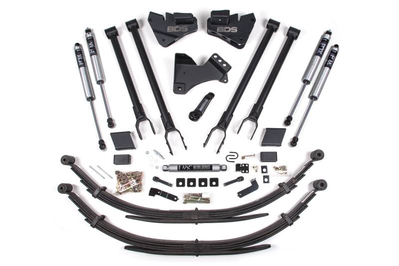 BDS 4 Inch Lift Kit 4-Link Conversion w/Fox Shocks and 5" Rear Block for Ford F250/F350 Super Duty w/3 Leaf Main (17-19) 4WD Diesel (1538FS)