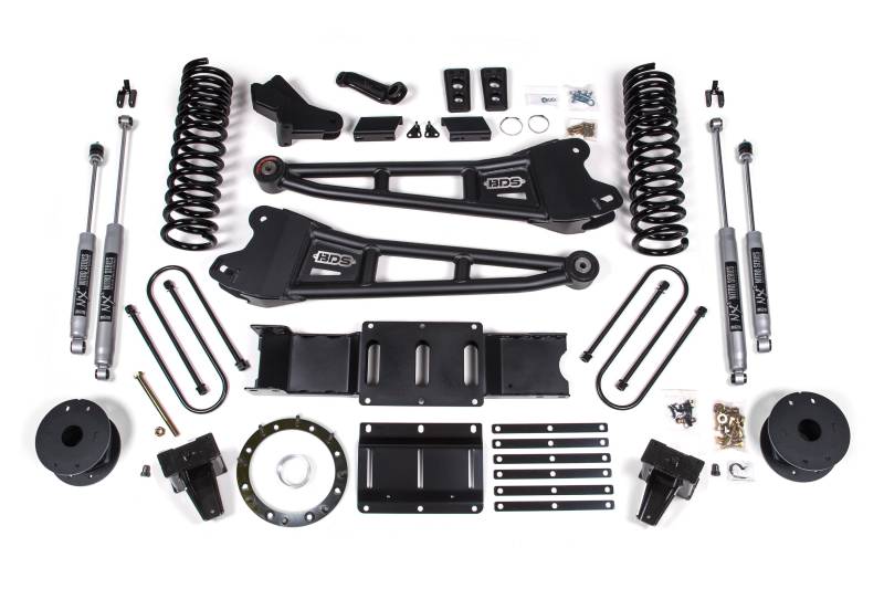 Raise your diesel powered RAM 3500 with factory rear air bags truck to next heights with this 6-inch radius arm lift kit from BDS Suspension. Designed to improve stance, performance, and capability, this kit includes everything necessary to set your truck up right with clearance for up to 37" tires.