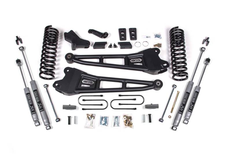 Upgrade the ride and style of your 2013-2018 RAM 3500 diesel powered truck by installing this 4-inch radius arm lift kit from BDS Suspension. Designed to improve stance, performance, and capability, this kit includes everything necessary to set your truck up right with clearance for up to 35" tires.