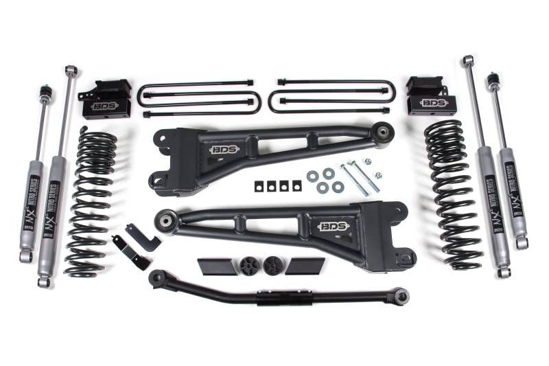 Level out and take your Ford F450 Super Duty diesel or gas powered truck with this 2.5-inch radius arm lift kit from BDS Suspension. Designed to improve stance, performance, and capability, this kit includes everything necessary to set your truck up right with clearance for up to 35" tires.