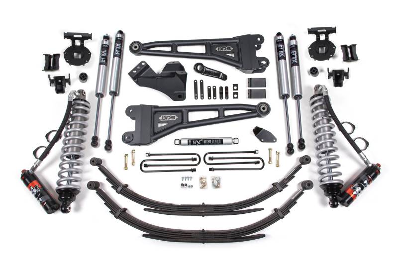 BDS 4 Inch Lift Kit w/Radius Arm FOX 2.5 Performance Elite Coil-Over Conversion and Leaf Springs for Ford F250/F350 Super Duty (05-07) 4WD Diesel (1933FPE)