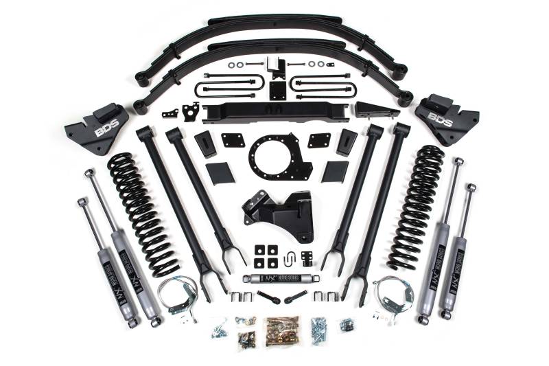 Take your Ford Super Duty diesel truck to the next level with this 9-inch 4-Link lift kit from BDS. Designed to improve stance, performance, and capability, this kit includes everything necessary to set your truck up right with clearance for up to 40" tires.