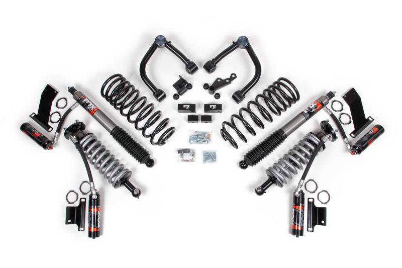 Up front the lift kit includes FOX 2.5 Performance Elite Coilovers with DSC remote reservoirs, heavy duty tubular upper control arms for increased strength, BDS heavy duty diff. drop brackets as well as solid aluminum sway bar drop blocks. In the rear this kit utilizes 1- 3/4" BDS heavy duty coil springs and a set of FOX 2.5 Performance Elite shocks with DSC remote reservoirs for ultimate adjustability that lets you dial in for the smoothest ride possible.