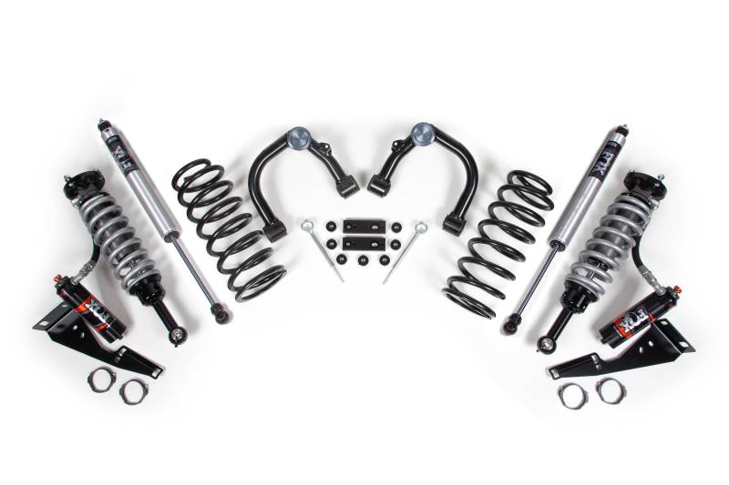 Up front the lift kit includes FOX 2.5 Performance Elite Series remote reservoir coil-over shocks and heavy duty tubular upper control arms for increased strength. In the rear this kit utilizes a 1.5-Inch lift rear spring designed for improved load capacity and ride comfort. Finish off the rear with either a FOX 2.0 Performance Series shock delivering excellent performance and control or a complementary set of FOX 2.5 Performance Elite shocks designed to enhance control and stability, featuring easy adjustability to tackle any terrain with confidence.