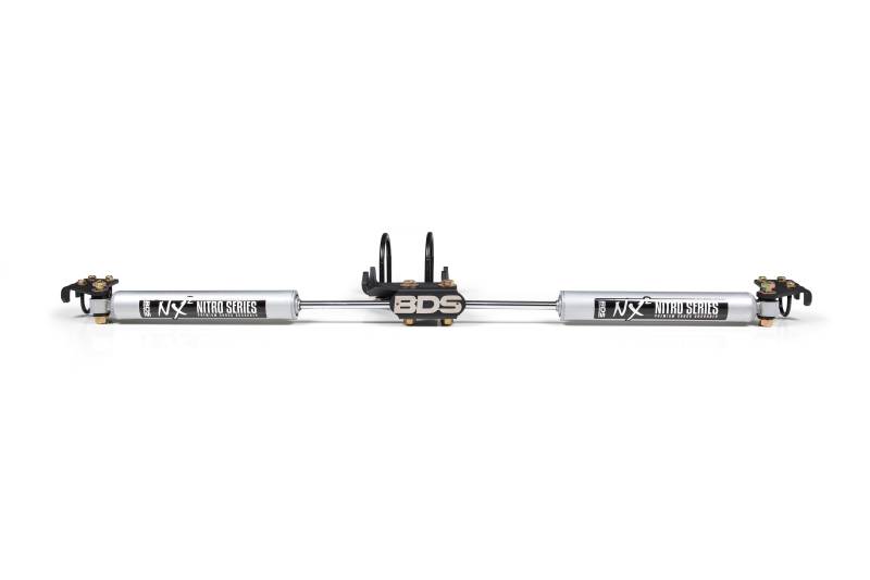 Enhance the handling of your 2005-2025 Ford F250 and F350 Super Duty 4WD by installing a BDS dual steering stabilizer mounting kit with NX2 shocks. Installing larger tires can exert additional force on your truck's suspension, but steering stabilizer shocks can effectively reduce bump steer and steering wheel feedback. BDS mounting brackets are constructed of high-strength steel and can be easily bolted on. With the installation of a steering stabilizer kit along with your BDS lift kit, you can extend the lifespan of your factory steering components.