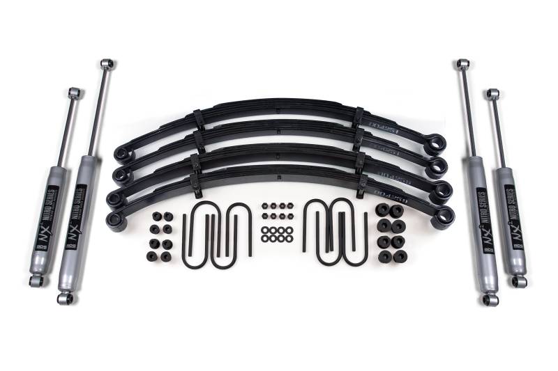 This 2.5-inch lift kit includes front and rear Glide-Ride leaf springs with new u-bolts and round out these kits with your choice of specially tuned NX2 nitro series gas shocks or FOX 2.0 IFP performance series gas shocks to offer improved damper performance.